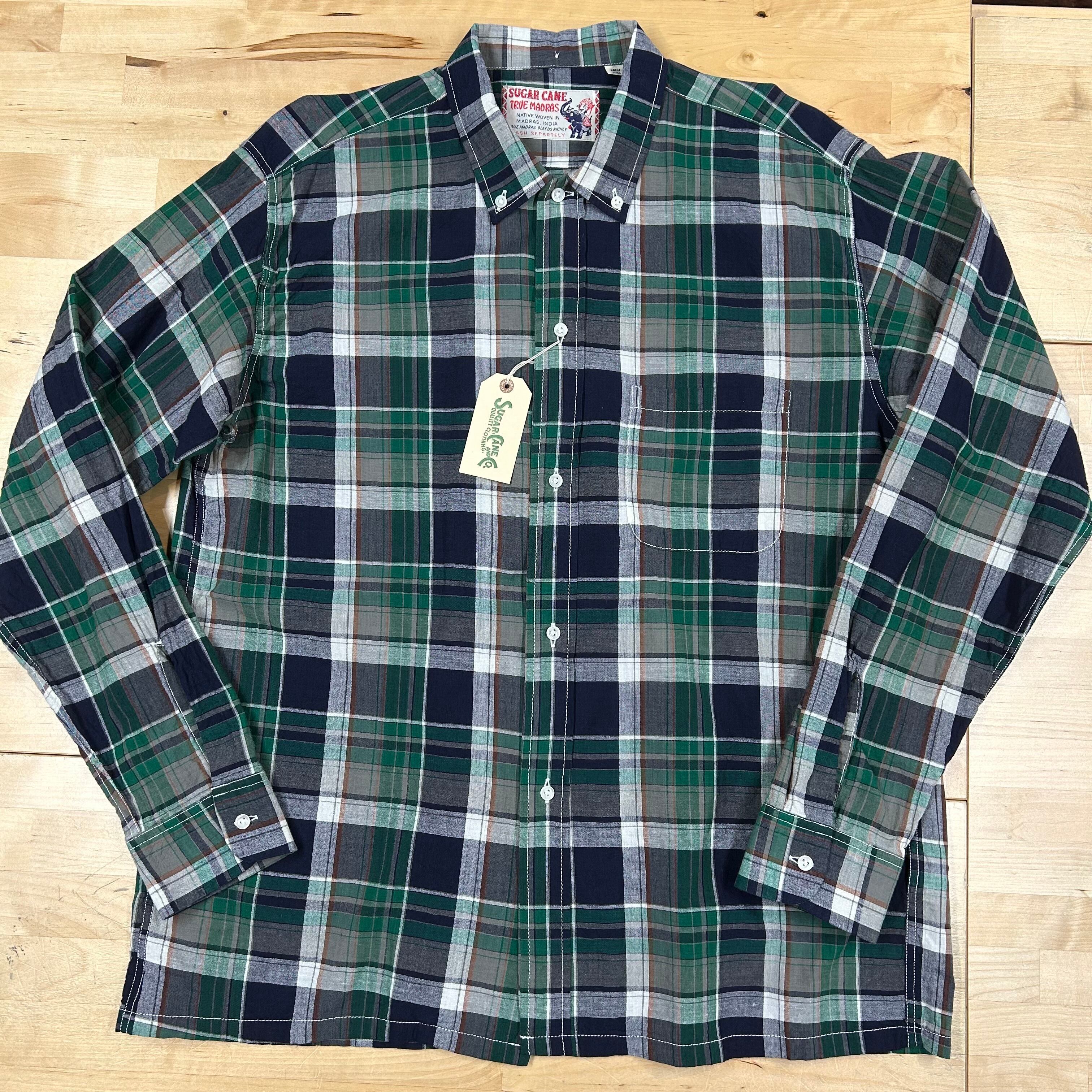 【SUGAR CANE】 「INDIA MADRAS CHECK BUTTON DOWN SHIRT」 【品番:SC29000-128(NAVY)】
