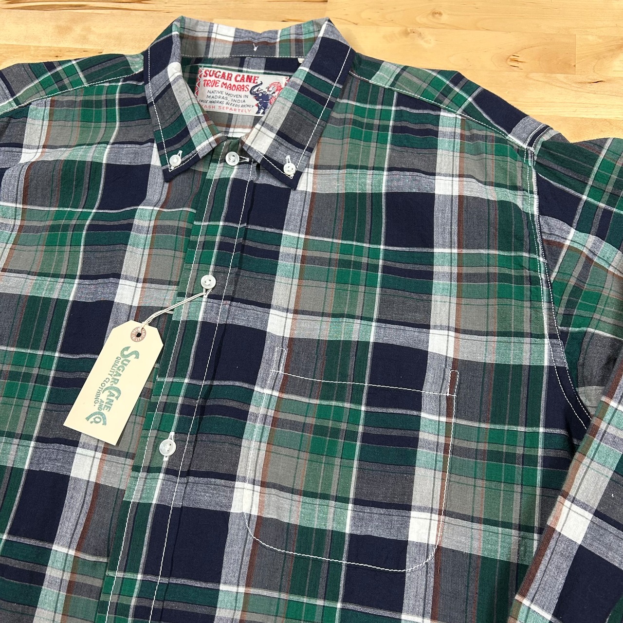 1950~1960年代のアイビースタイルには欠かせないインド南東部のマドラス(現チェンナイ)で織られたチェック生地を使用している。国産では出せない風合いや色合いが特徴。型は台襟のないやや簡素化されたボタンダウンシャツ。襟元にはTRUE MADRASラベルが縫い付けられる。