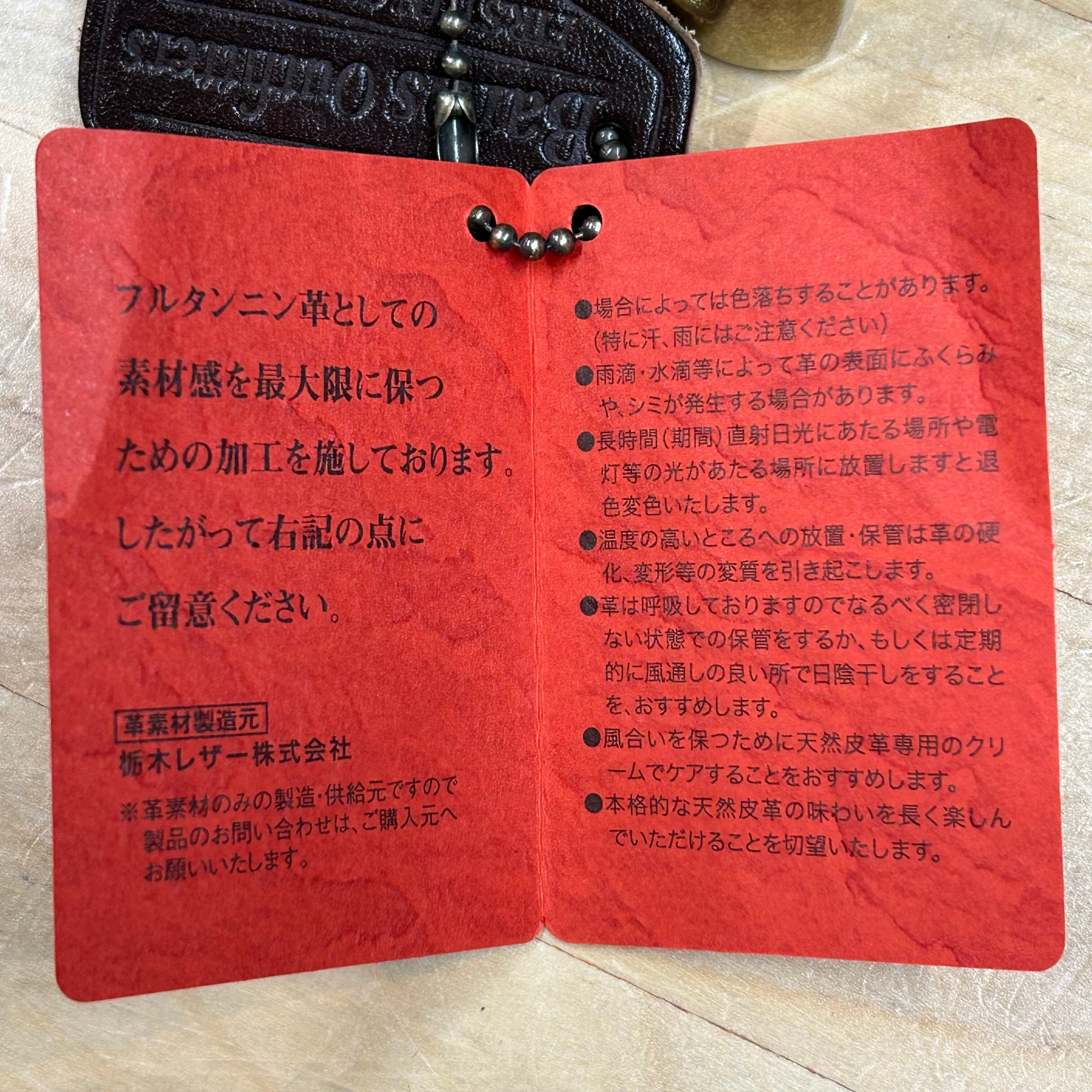 頻繁に動かすショルダー部分の皮は密度が高く非常に丈夫な特徴を持つ。独自の風合いとシワ感を持つショルダーレザーを採用する事で天然皮革ならではの唯一無二な表情を演出。使い込むごとに馴染んでいき、自分だけの一本へと育てていくことができる。厚さも4〜5mmと極厚なのでタフに使用可能。