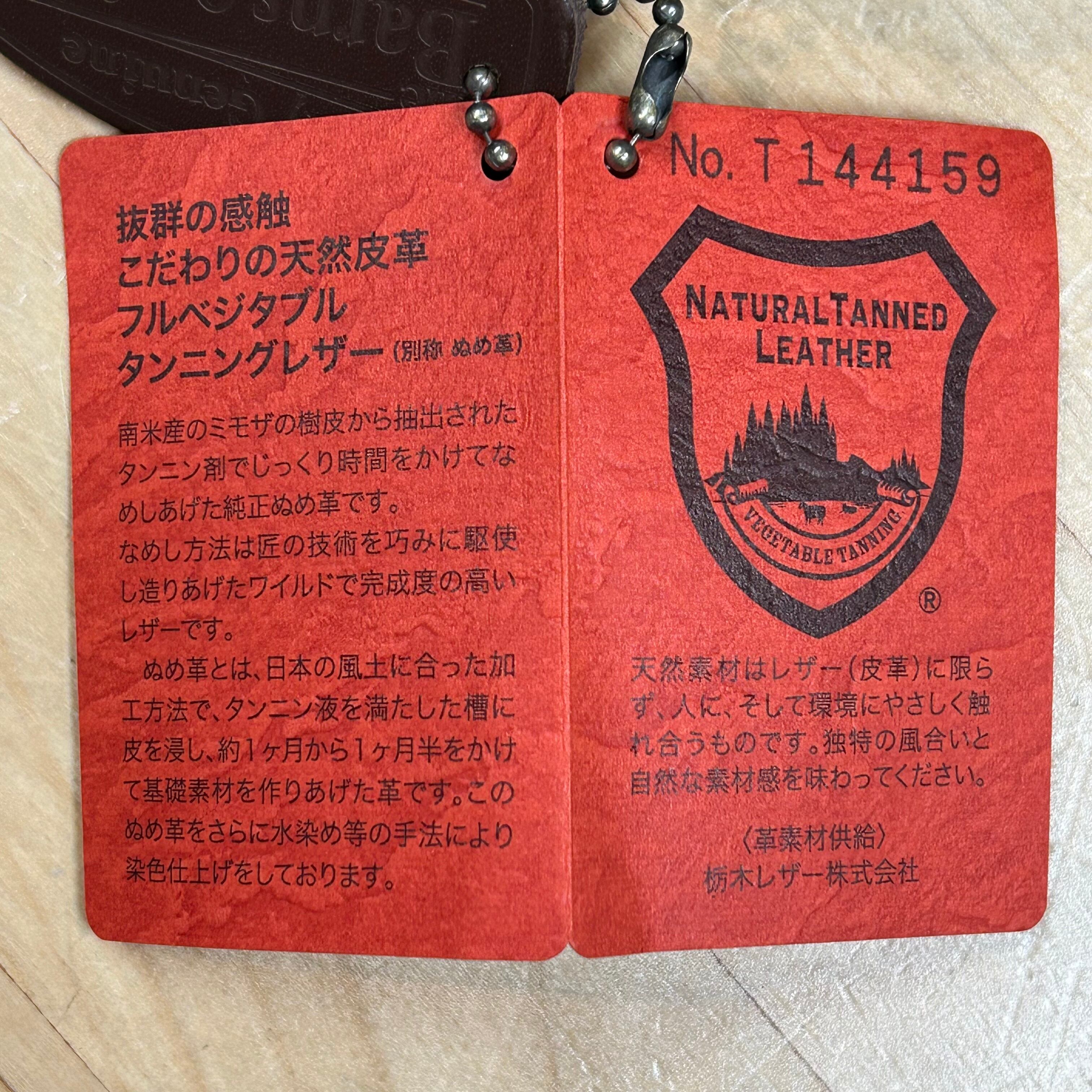 頻繁に動かすショルダー部分の皮は密度が高く非常に丈夫な特徴を持つ。独自の風合いとシワ感を持つショルダーレザーを採用する事で天然皮革ならではの唯一無二な表情を演出。使い込むごとに馴染んでいき、自分だけの一本へと育てていくことができる。厚さも4〜5mmと極厚なのでタフに使用可能。
