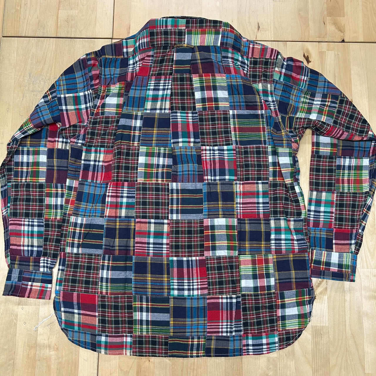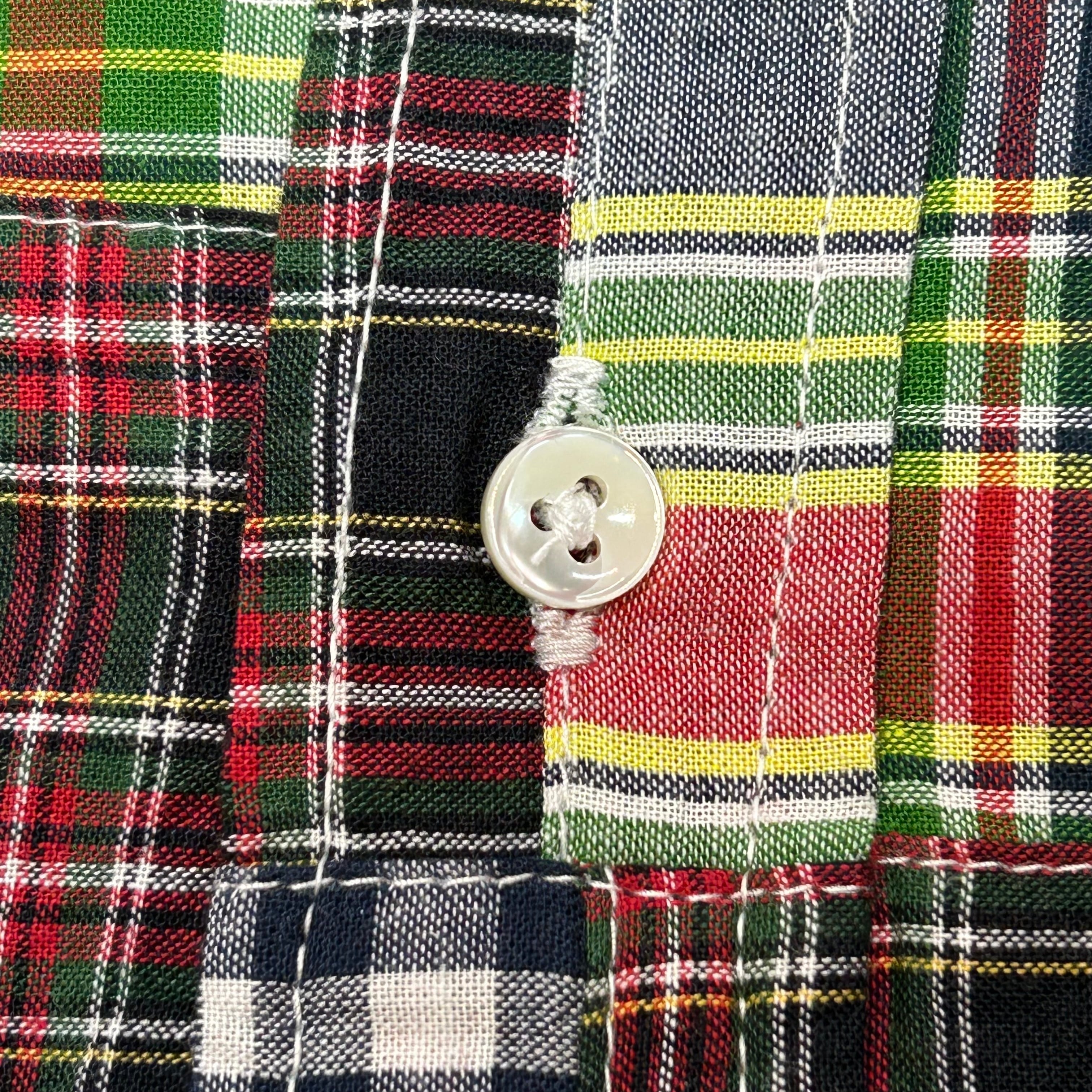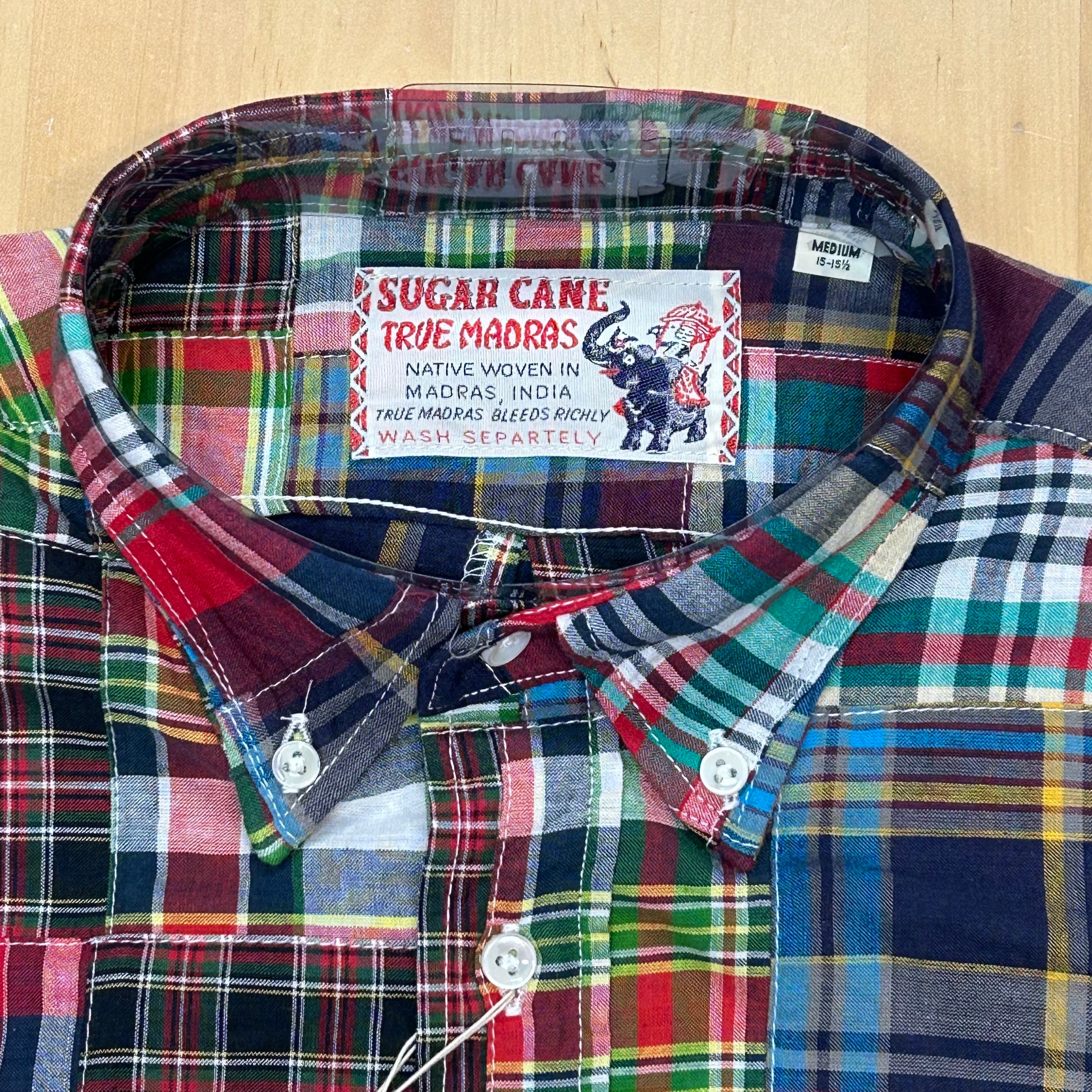 1950~1960年代のアイビースタイルには欠かせないインド南東部のマドラス(現チェンナイ)で織られたチェック生地をパッチワーク状にして使用している。国産では出せない風合いや色合いが特徴。型はボタンダウンシャツであるが、脇や袖ぐりは頑丈な2本針巻き縫い仕様となっている。襟元にはTRUE MADRASラベルが縫い付けられる。