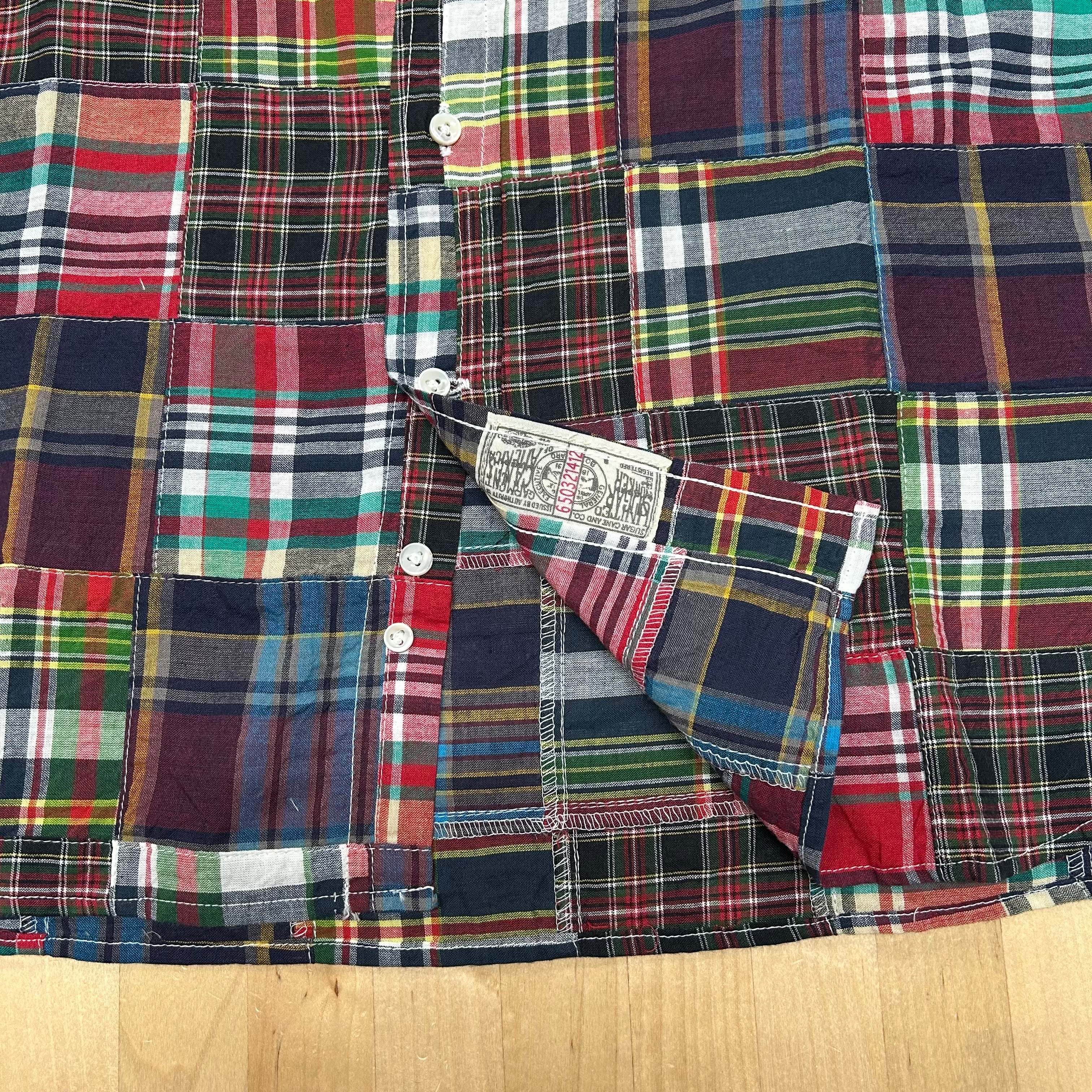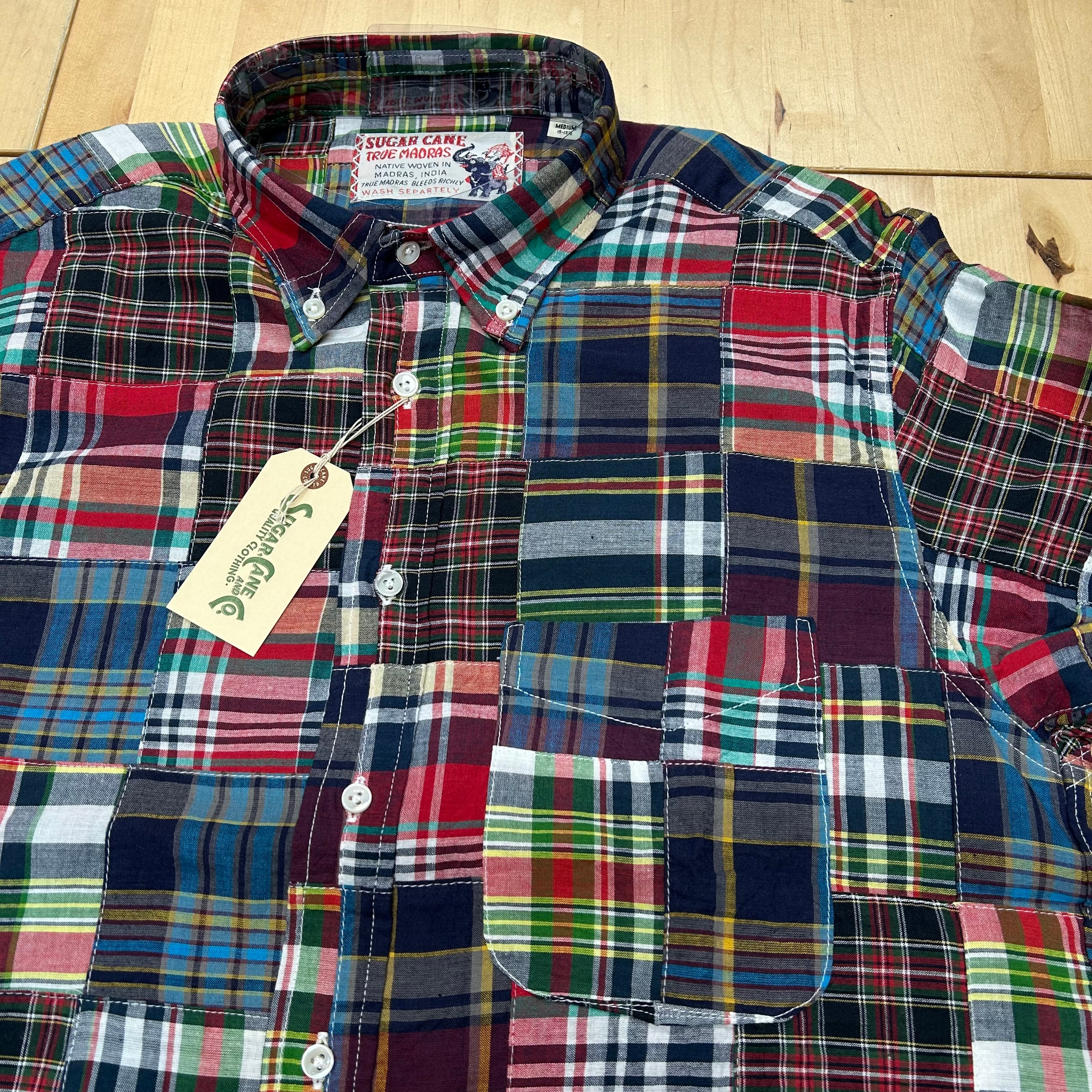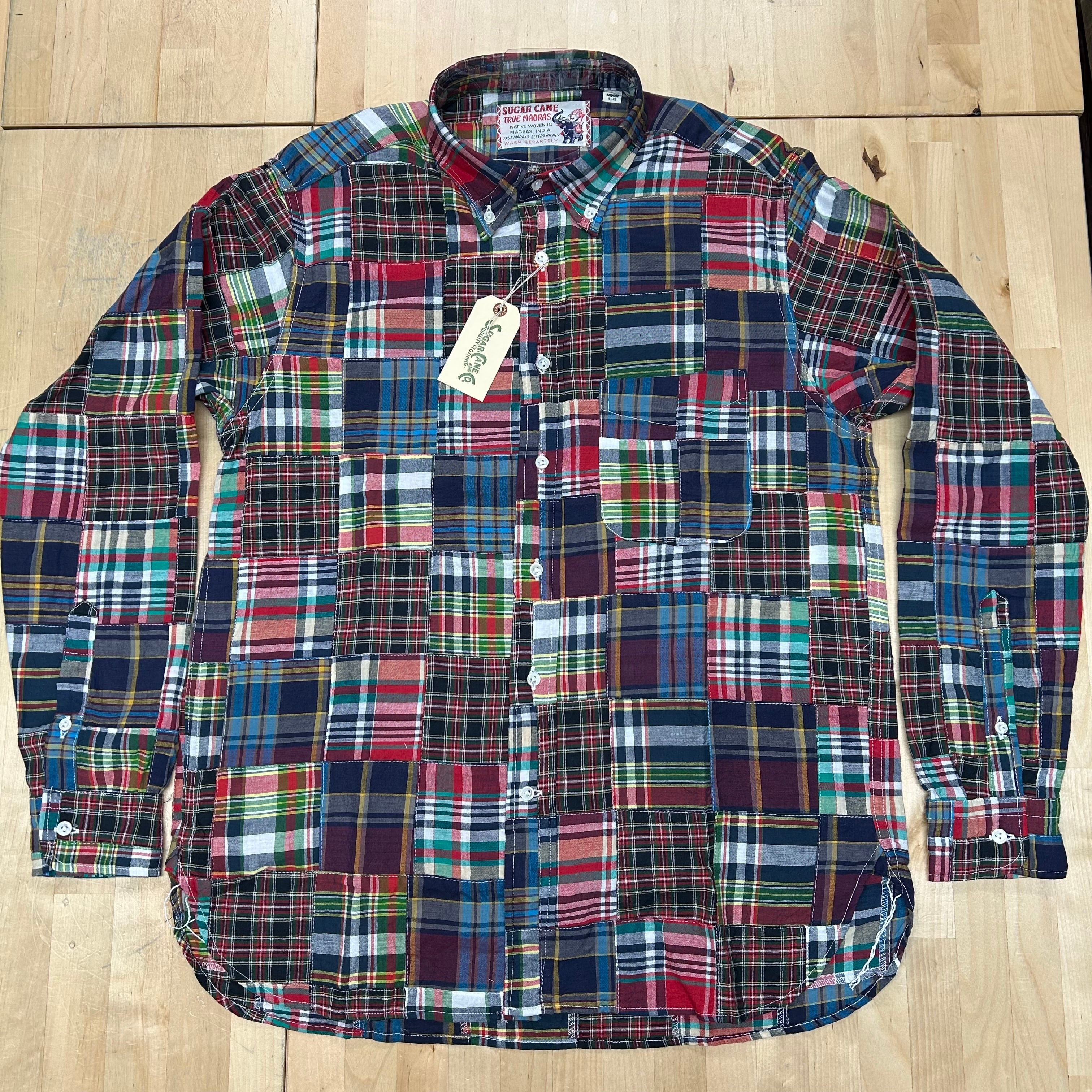 【SUGAR CANE】 【品番:SC29736-119(BLACK)】 「INDIA MADRAS CHECK PATCHWORK BUTTON DOWN SHIRT」