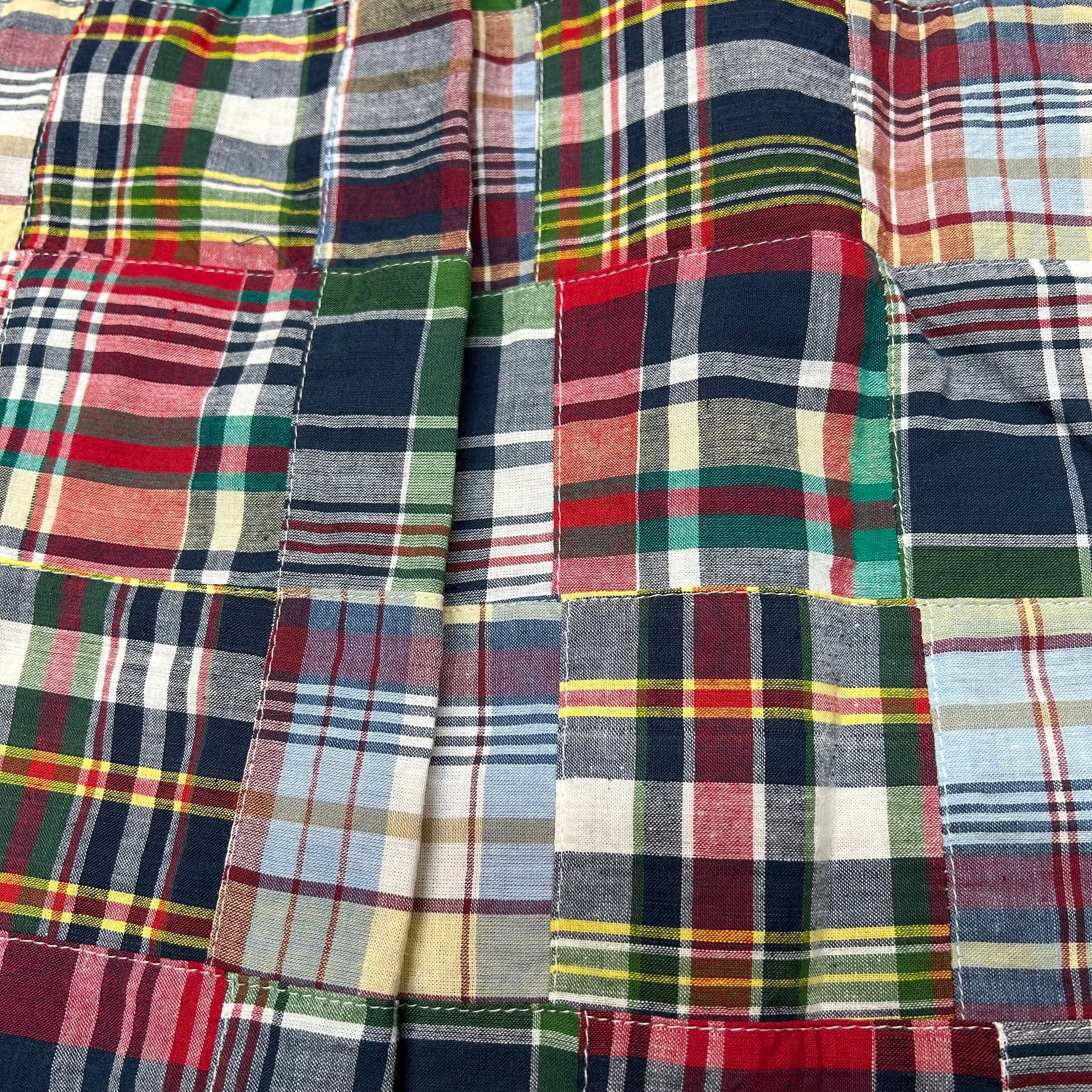 1950~1960年代のアイビースタイルには欠かせないインド南東部のマドラス(現チェンナイ)で織られたチェック生地をパッチワーク状にして使用している。国産では出せない風合いや色合いが特徴。型はボタンダウンシャツであるが、脇や袖ぐりは頑丈な2本針巻き縫い仕様となっている。襟元にはTRUE MADRASラベルが縫い付けられる。