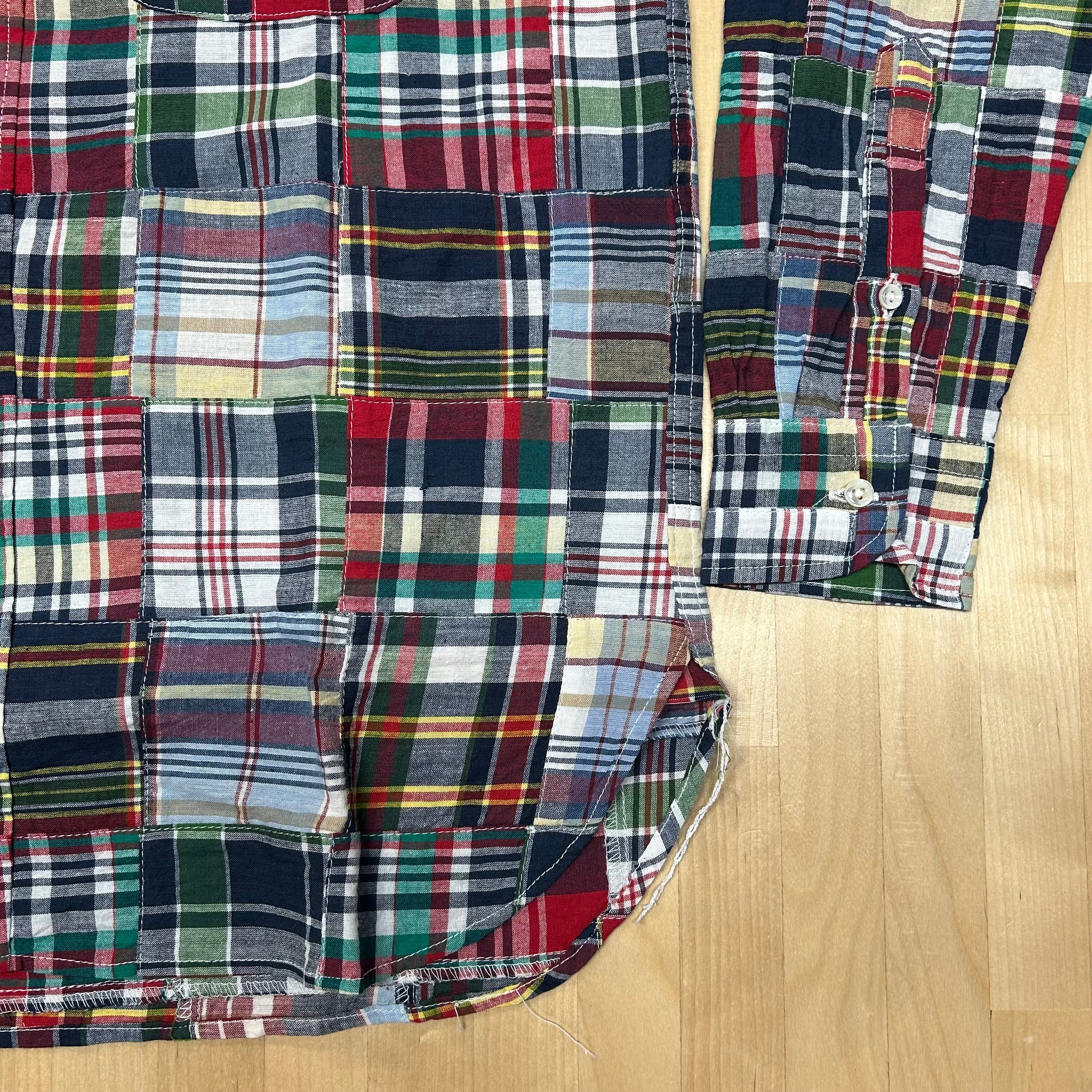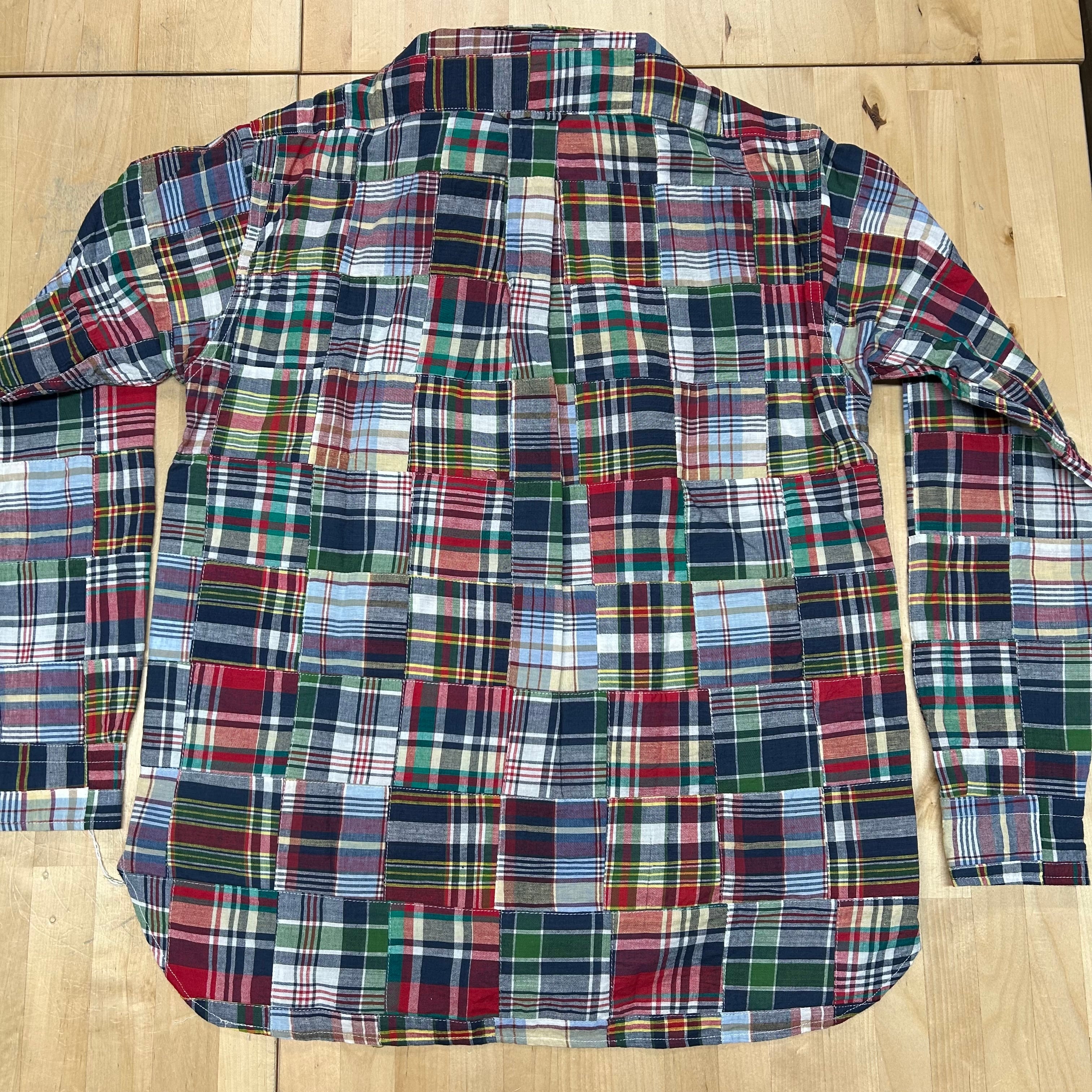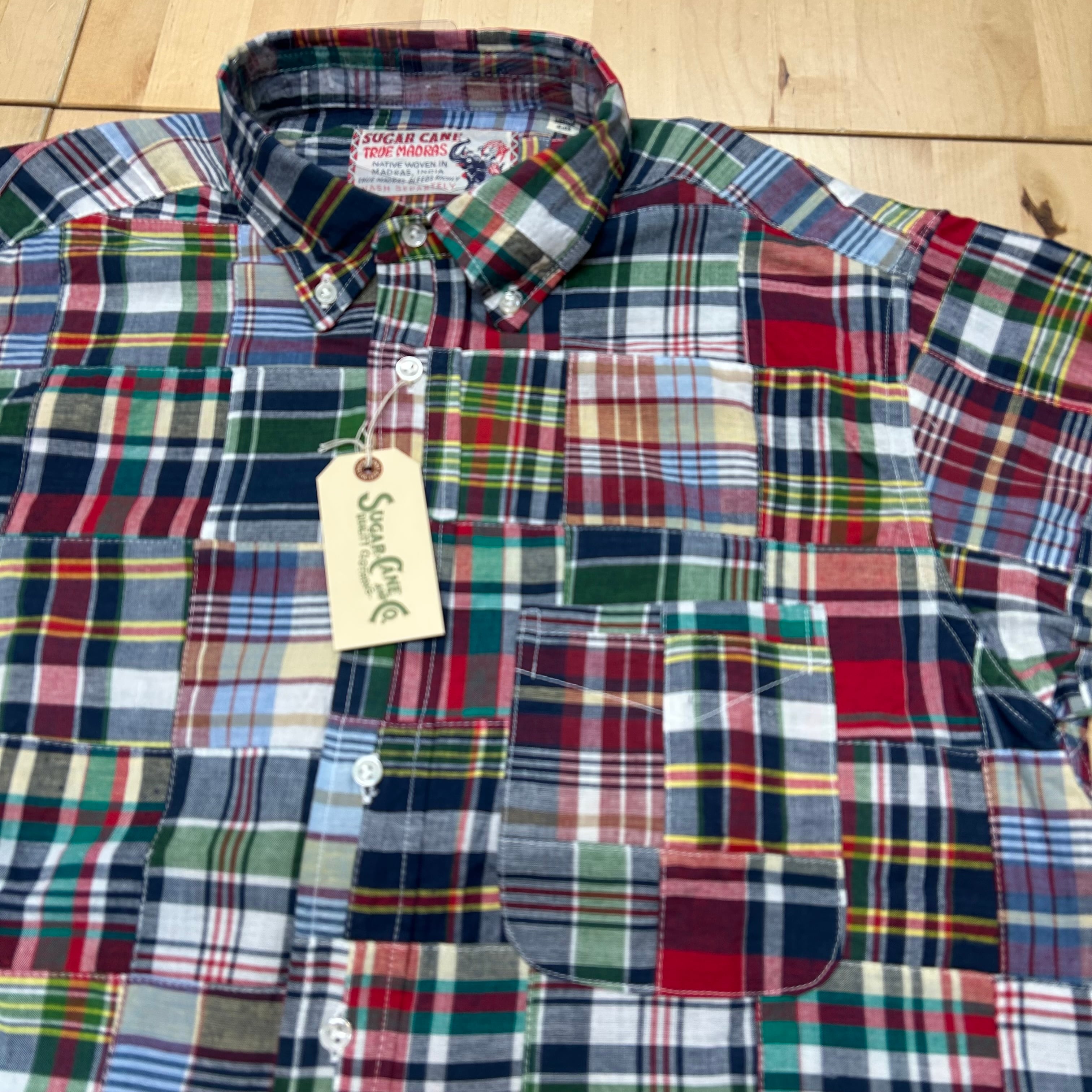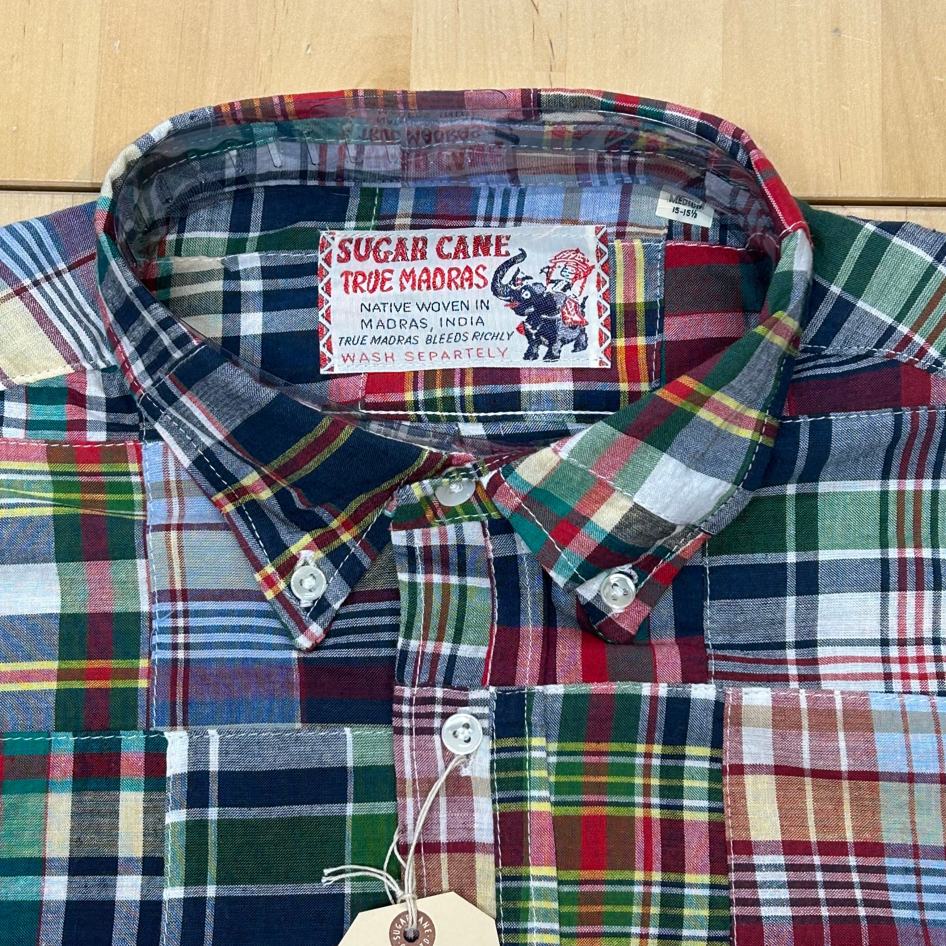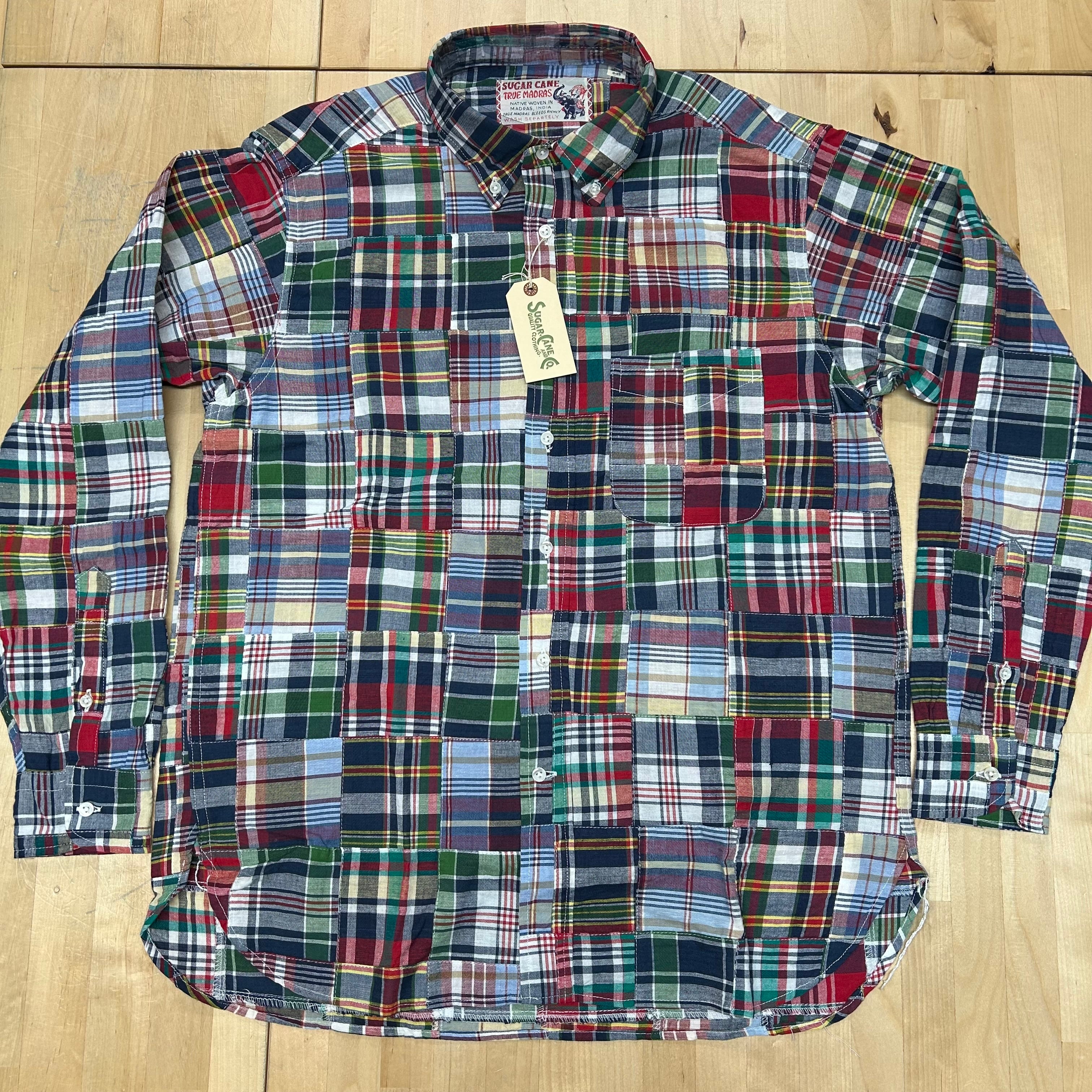 【SUGAR CANE】 【品番:SC29736-128(NAVY)】 「INDIA MADRAS CHECK PATCHWORK BUTTON DOWN SHIRT」