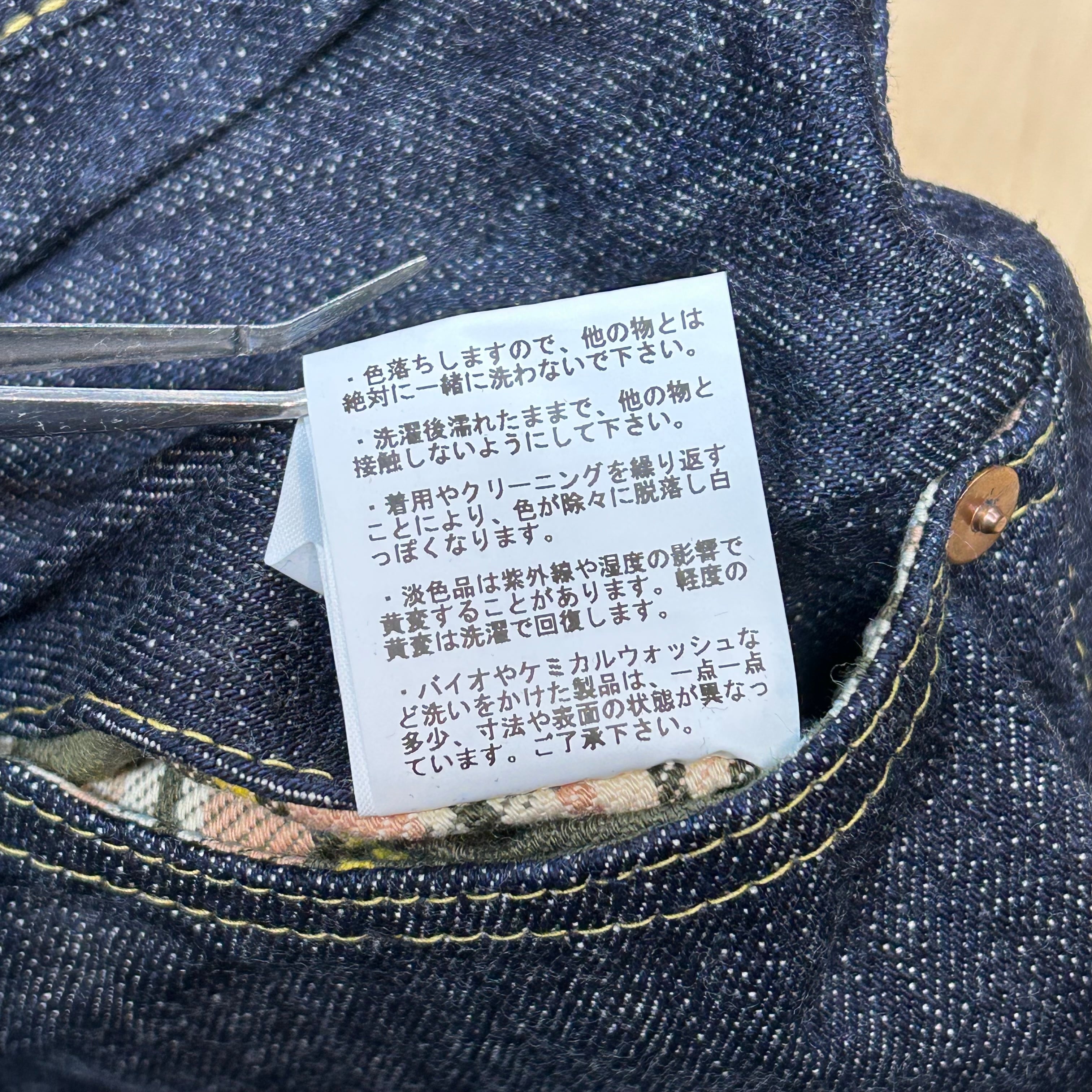 デニム生地は日本で生産しており、1943年モデルをベースに米綿を使って当時の紡績技術が未熟で不均一なムラ感の強い荒々しい生地を再現。縫製はシュガーケーンのアメリカ工場で行い、今回はヴィンテージの一個体を完全再現するのではなく、型紙やパーツ、ステッチワークなどのディテールについて、これまでに確認してきたさまざまな大戦期の個体の特徴を組み合わせ、オリジナルの要素も加えた1940’sスペシャルモデルに仕上げた。なかでも特筆すべきはポケットの袋地。1940年代の大戦期にROUGH WEAR社が民間用レーベル「ROUGH-IN」で製作したヴィンテージジャケットのツイルチェック裏地を再現し、ネルポケットとして使用している。
