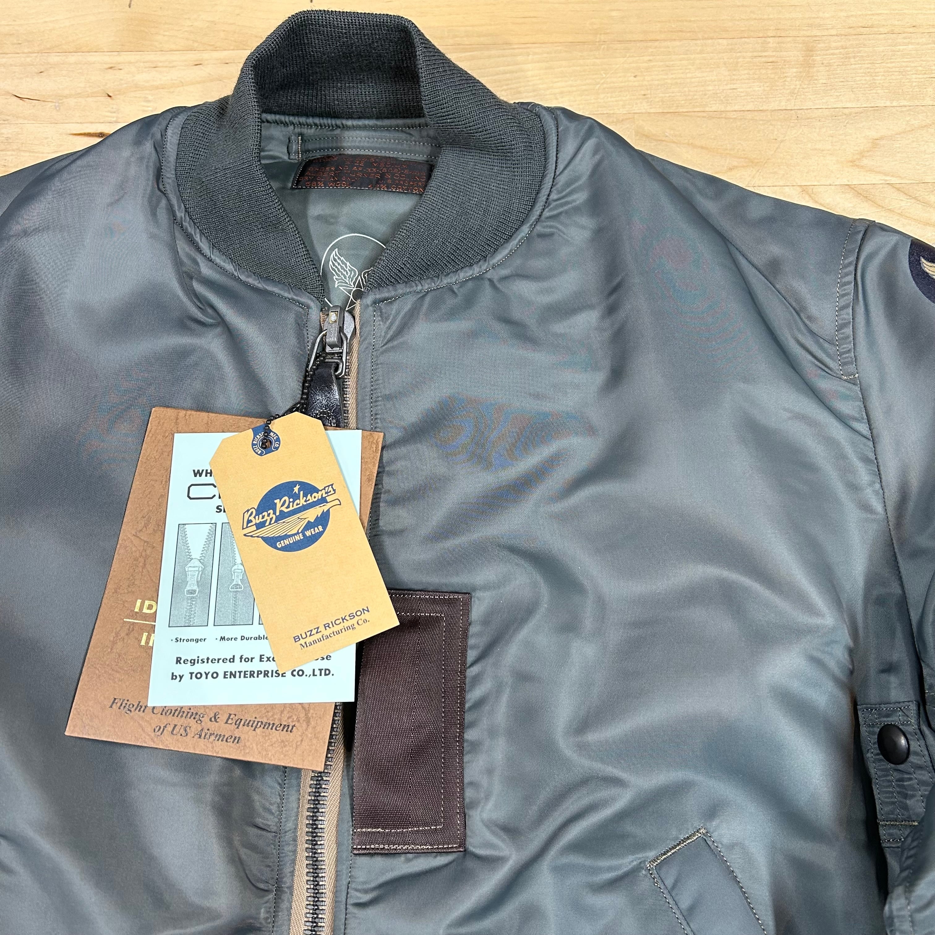 数あるフライトジャケットの中で最もポピュラーで、かつ最も息の長い存在がMA-1である。MA-1の開発は1950年代初めに開始されたがベースとなったのはそれまでの正式フライトジャケットの座にあったB-15シリーズである。B-15は1943年に登場したコットン製のB-10を改良発展させたもので、めまぐるしい技術革新や軍用機の発展に呼応しつつ変貌を遂げてきたのである。そうして誕生したMA-1はフライトジャケットの襟を取ると言う最も大きな改良を加えられたモデルで、その背景にはジェット機が開発されそれまでの航空装備の見直しを迫られたからであった。1950年代前半の採用以来、1976年にCWU45/Pが登場するまでアメリカ空軍将兵によって愛され続けた。その間には細かい改良が加えられ、より完成度の高いものとして発展を続けてきたのは言うまでもない。そのスタイルはファションの世界にも大きな影響を与えており、もはやミリタリーの範疇を大きく超えた存在となっている。(バズリクソンズ、カタログより)