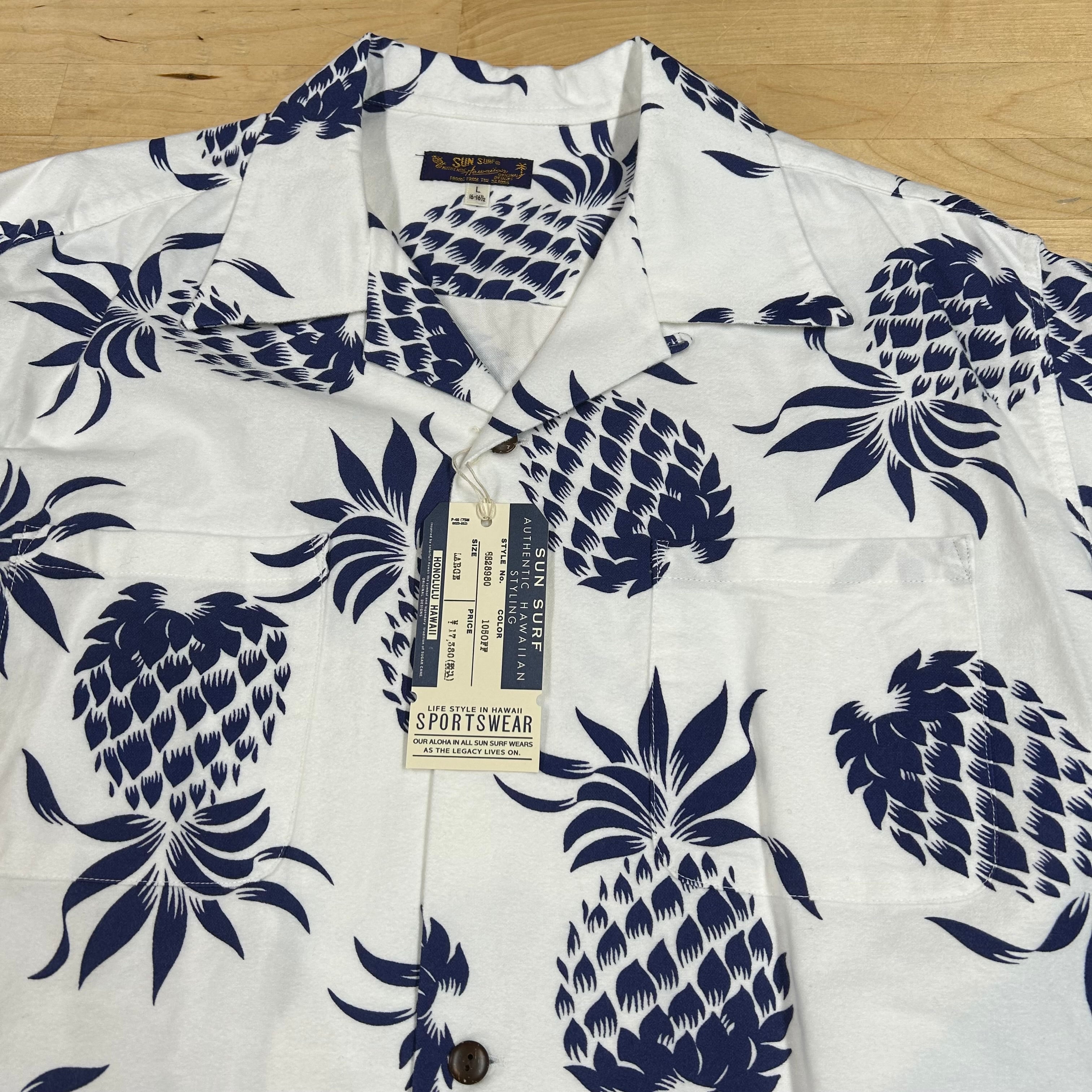 デュークのパイナップル柄、アロハシャツの代名詞的な柄の1つ。パイナップル柄だけ集めてる人もいるとか?
