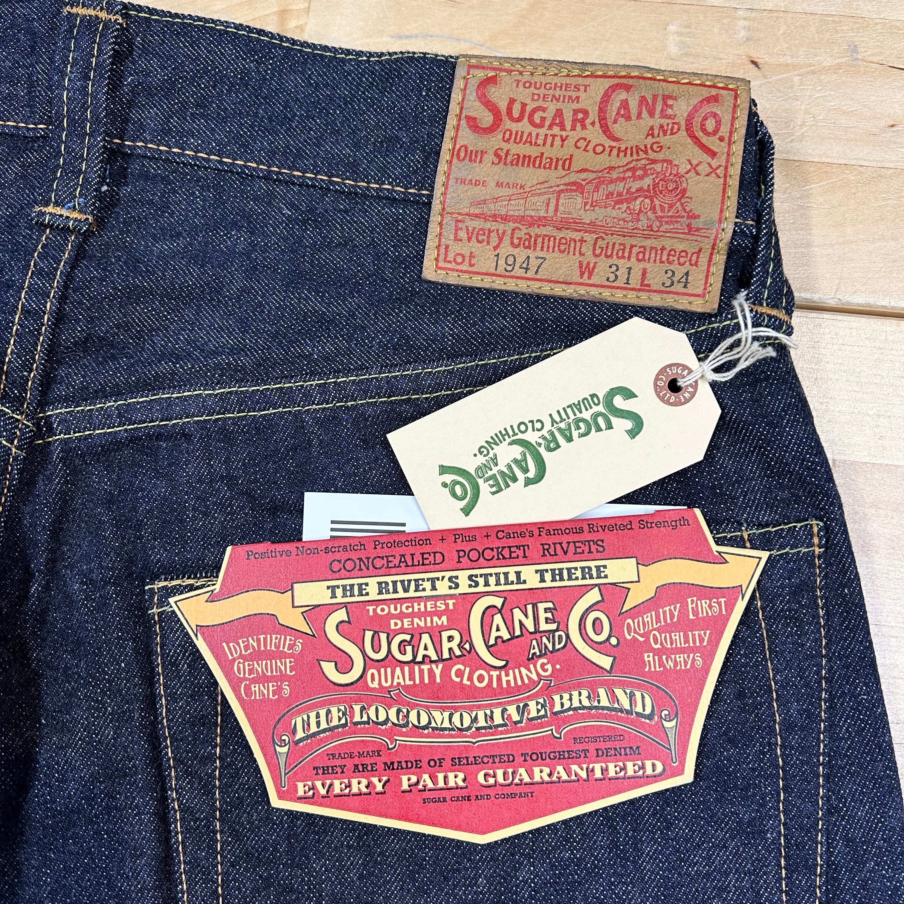 戦後、1940年代後半のジーンズにみられる贅沢なディテールを余すところなく再現したシュガーケーンの代表作「1947モデル」。ヴィンテージデニムをもとに紡績、染色、織り、縫製の全行程にこだわり、"STAN-DARD DENIM”の名にふさわしい1本に仕上げている。シルエットはレギュラーストレート。(Sugar Caneカタログより)